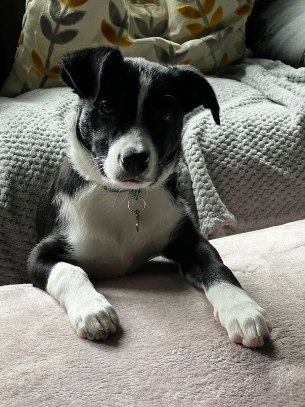 It’s with a heavy heart that we’re looking for a new home for our 17-week-old Border Collie puppy. Unfortunately, due to work commitments, we can’t give her the time and attention she deserves. We also have a 15-year-old Staffordshire Bull Terrier who is too old to be around a lively young pup, so this is the best decision for both dogs.She’s a beautiful, bright, and affectionate girl with lots of energy and a lovely nature. She comes from working parents and was born on a farm, so she has great instincts and plenty of potential for training and activity.